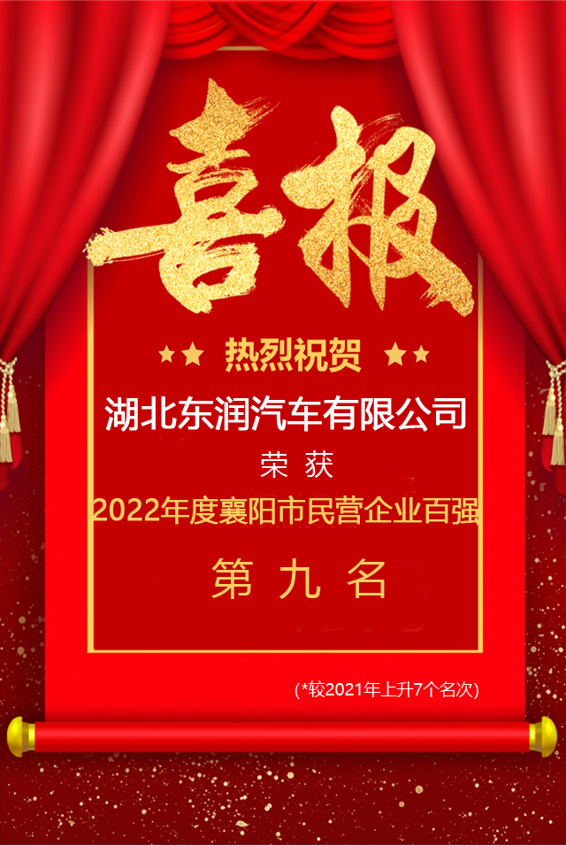 热烈祝贺湖北东润汽车有限公司蝉联襄阳市民营企业百强